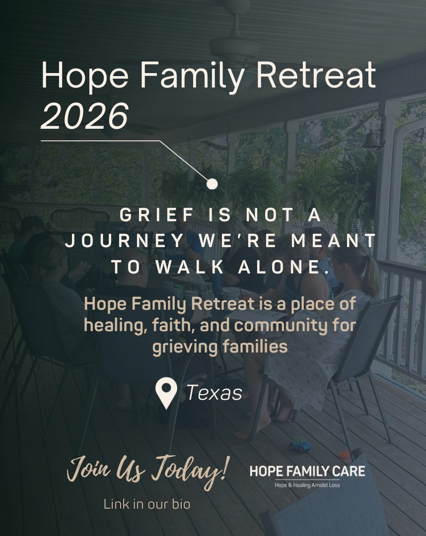 The loss of a child affects the whole family, we want to allow families to process their grief together and ask questions that help the whole family walk through the loss of a child/sibling. Hope Family Retreats are a great way to process through the grief and pain as a family.